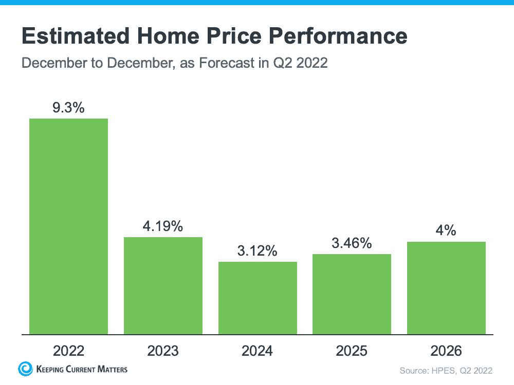 Even with the price reductions taking place, the new prices are still above what they were in January 2022. Yes, the market is shifting where home prices are at worst stabilizing and at best experiencing modest price appreciation. What do the experts say about home prices in the near future? In the most recent information reported in the second quarter of 2022, experts predict an average of 9.3% in home price appreciation for 2022. With economic developments changing almost weekly, it is difficult for them to predict with absolute certainty that prices won’t decrease, but in that same forecast, they predict home prices will still appreciate modestly from 2023-2026 in the 3-4% range.