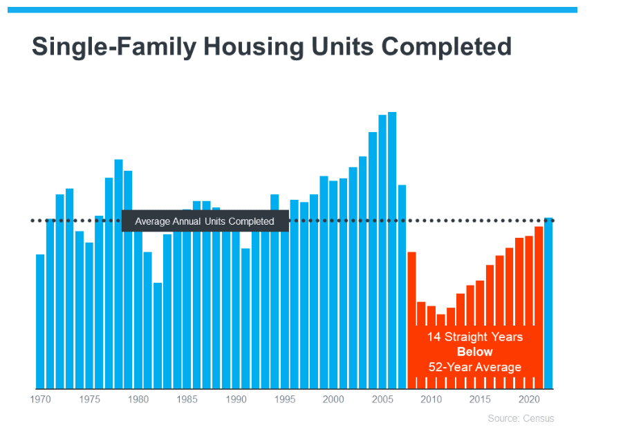 For the last 14 years, builders have not been building enough homes to meet the growing housing demand. In fact, they have not been able to keep up with historical demand over the last 52 years. This has led to what many see as almost a permanent undersupply of homes. Thankfully, builders have ramped up, but it's still not enough to make up for the years of deficit.
