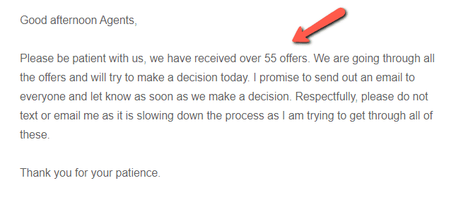 Wondering if home prices will drop this year? See the email I received on a house in Frisco that we did not submit an offer on and you will understand that 2022 will continue to be a strong seller's market.